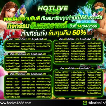 hotlive1688 เล่นเกมสล็อตออนไลน์กับค่ายนี้ดีที่สุด hotlive1688 เป็นค่ายเกมสล็อตออนไลน์ที่มีความปลอดภัยสูง เพราะเล่นได้หลากหลายรูปแบบ เล่นแล้วทำเงินกำไรได้จริงสมัครสมาชิกฟรีค่ายนี้ค่ายเดียวสล็อตออนไลน์น้องใหม่มาแรงที่สุดในขณะนี้ กลายเป็นกระแสที่ได้รับความนิยมสูงสุดสำหรับค่ายพีซีสล็อตค่ายเกมสล็อตออนไลน์ ที่พร้อมเปิดโอกาสให้แก่นัดรวมกัน เขาเล่นโทรศัพท์ออนไลน์ที่ดีที่สุดมีเกมสล็อตออนไลน์คุณภาพสูง เป็น ทางเลือกที่ดีที่สุดสำหรับนักเดิมพันและที่จะได้ทดลองเล่นเกมสล็อตออนไลน์ใหม่ ๆ hotlive1688